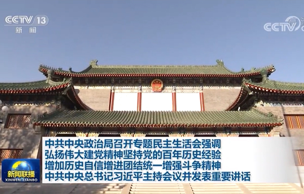 中共中央政治局于12月27日至28日召开党史学习教育专题民主生活会,以弘扬伟大建党精神,坚持党的百年奋斗历史经验,坚定历史自信,不忘初心使命,勇于担当作为,走好新的赶考之路为主题,联系中央政治局工作,联系带头严格执行中央政治局关于加强和维护党中央集中统一领导的若干规定,联系带头贯彻落实习近平总书记重要指示批示和党中央决策部署的实际,联系带头学党史、悟思想、办实事、开新局的实际,联系带头严格执行中央八项规定及其实施细则和解决形式主义突出问题、为基层减负的实际,回顾一年来中央政治局加强自身建设情况,总结成绩,查摆不足,进行党性分析,开展批评和自我批评。