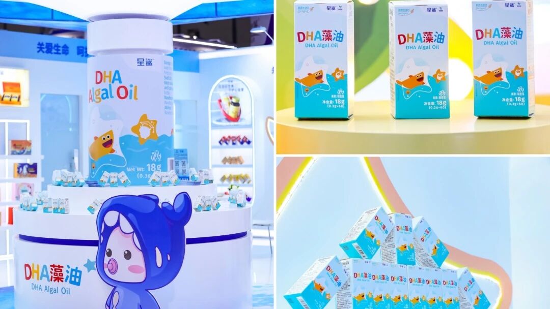 王牌儿童补剂,实力圈粉宝妈群体。儿童补剂系列是展区的“吸睛担当”,其中星鲨®DHA藻油从新西兰原装进口,采用裂壶藻为来源的DHA藻油为原料,纯度和含量双高,无香精、色素及防腐剂添加。
