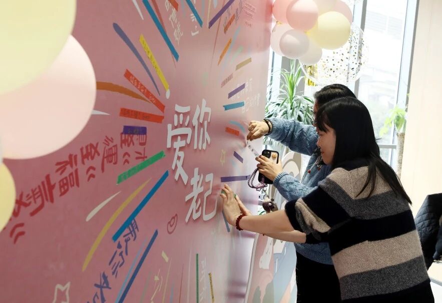 本次活动以“守护健康”为主线,倡导“爱自己、拥抱自己”的生活理念。现场精心布置了创意签到区,女员工们用彩色艺术纸写下新年心愿,绘制属于自己的“春日花朵”,在轻松愉悦的氛围中开启节日仪式感。大家还领取了“健康自检卡”,在互动中关注自身健康状态,传递出对自我关爱的温暖提醒。