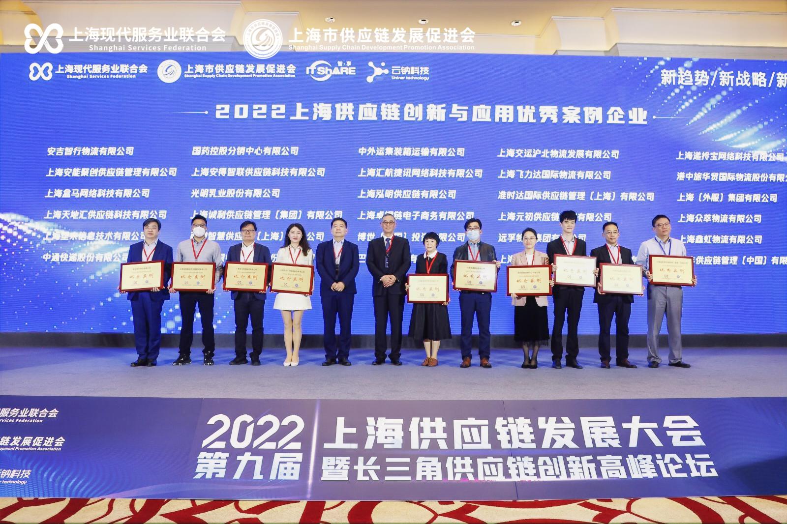 10月26日,由上海市商务委员会指导,上海现代服务业联合会和上海市供应链发展促进会联合主办的“2022第九届上海供应链发展大会暨长三角供应链创新高峰论坛”在上海召开。会上,国药控股分销中心有限公司被授予“2022上海市供应链创新与应用优秀案例企业”荣誉。市商委及市供应链发展协会主要领导以及获评的30家优秀案例企业代表参加了本次授牌仪式。