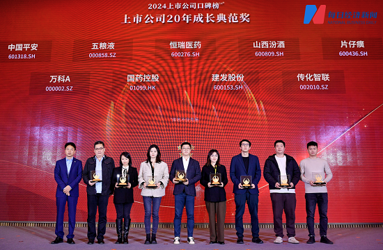12月6日,由每日经济新闻主办的“第十三届中国上市公司峰会”系列活动在成都隆重举行。期间,备受资本市场瞩目的中国资本市场年度荣誉盛典暨“2024第十四届上市公司口碑榜”重磅揭晓,国药控股股份有限公司凭借20年来专注服务于中国健康卫生行业的卓越表现,荣获组委会特别推出的2024年上市公司口碑榜?特别类榜单“上市公司20年成长典范奖”。