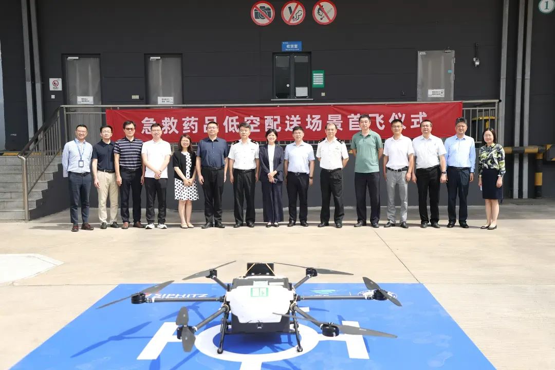 7月19日上午,一架装载着10盒用于救治心脏骤停急救药品的专业无人机,从苏州工业园综合保税区贸易功能区内的国药物流苏州物流中心仓库平稳起飞,朝着西南方向约7.8公里外的苏州大学附属儿童医院(总院)飞去。11分钟后这架无人机在目的地门诊楼顶楼平稳落地,成功实现“飞的”送急救药品。