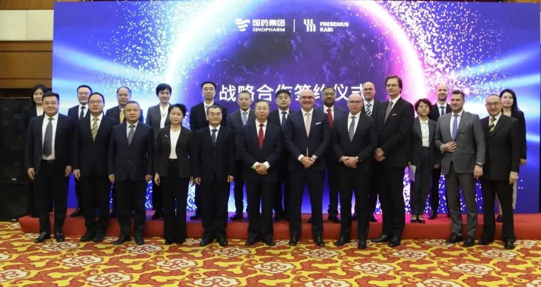 日前,在国药集团董事长刘敬桢、费森尤斯卡比首席执行官 Pierluigi Antonelli等领导的见证下,国药控股股份有限公司、中国国际医药卫生有限公司分别与费森尤斯卡比(中国)投资有限公司签署战略合作协议,标志着国药集团与费森尤斯卡比开启合作新篇章。国药集团副总经理晋斌,费森尤斯卡比华瑞制药有限公司副董事长石晟怡出席活动并见证签约。
