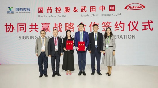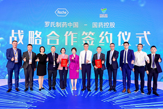 11月6日,国药控股与罗氏制药中国在第六届进博会期间举行战略合作签约仪式。国药控股副总裁陈战宇、罗氏制药中国多渠道生态体系拓展部负责人丁侠代表双方签约。国药控股总裁、执行董事刘勇,国药控股全球采购与供应链服务中心董事长孔学东、总经理刘天尧,副总经理赵敏、徐海,罗氏制药中国总裁边欣、肿瘤领域总经理钱巍、特药领域副总裁陈顗娟、医学和个体化医疗部副总裁李滨、产品管线策略及数字创新副总裁Ryan Harp