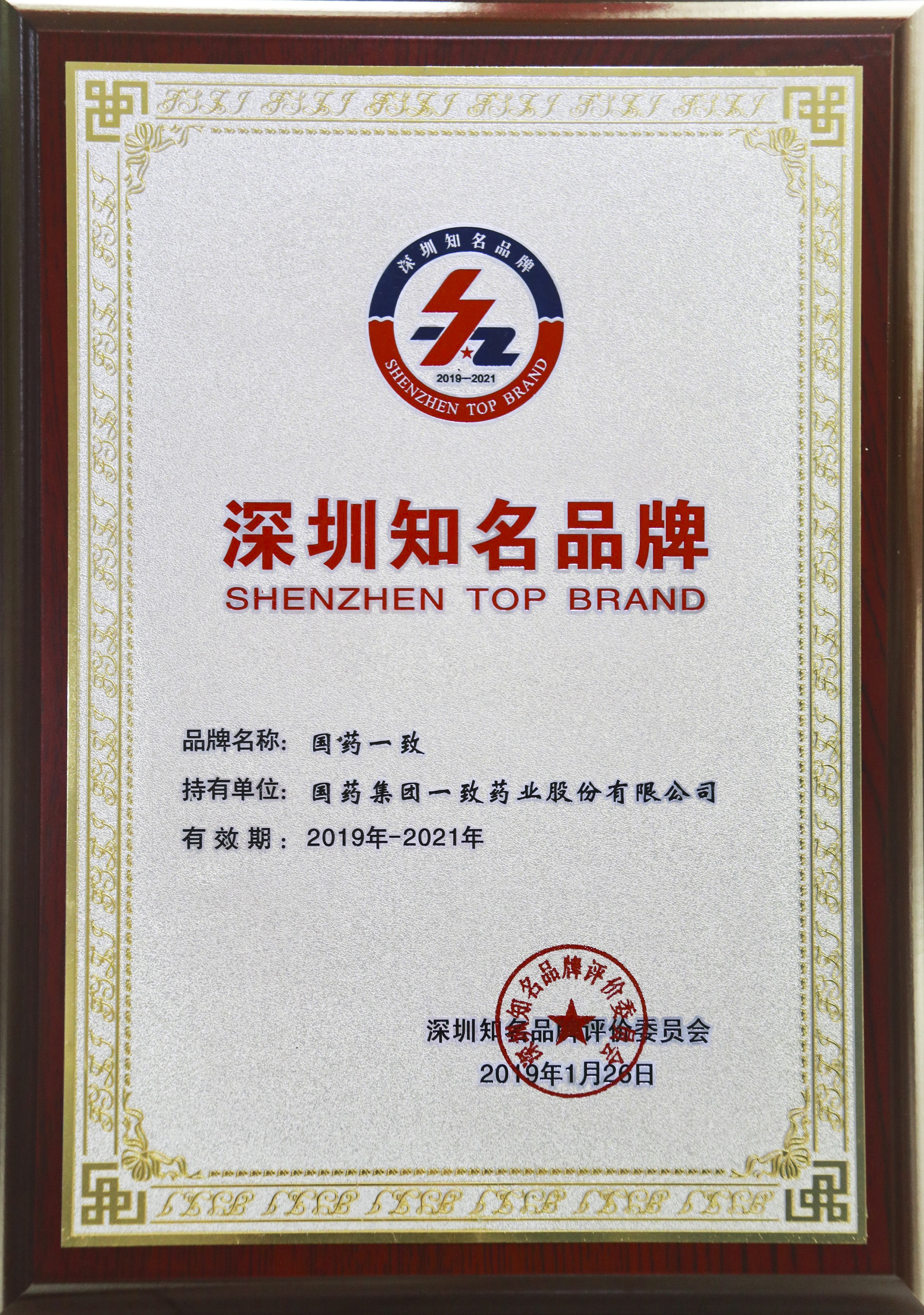 国药一致荣获第十六届深圳市知名品牌荣誉称号